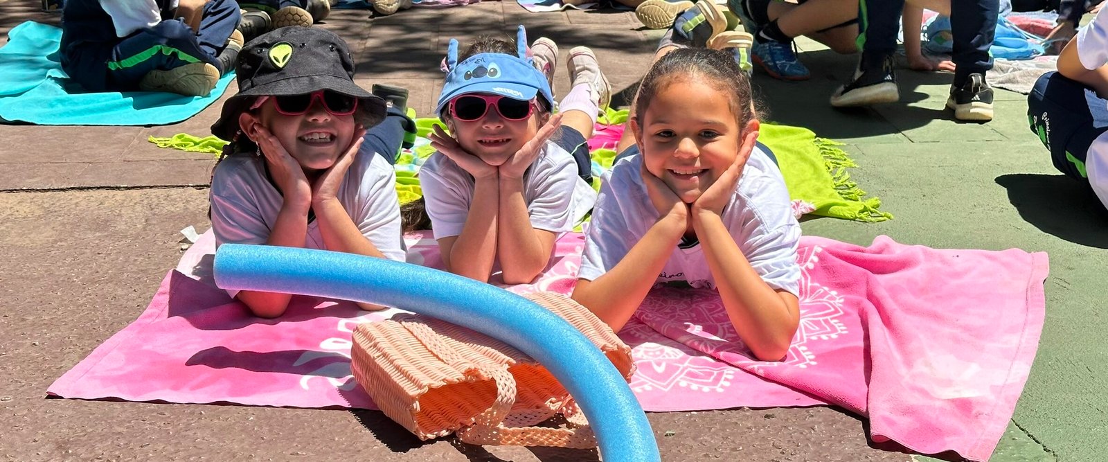A decoração e divulgação do evento contaram com a participação de todos. Cada membro da comunidade escolar auxiliou no preparo da decoração, transformando o espaço em um ambiente festivo e acolhedor. Pedimos as famílias que as crianças viessem à escola com algum acessório relacionado a piscina, praia, calor.